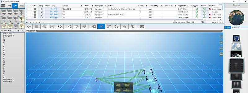 Visual Network Visualization Management System (NMS) for logical and virtual networks, including visual that drastically simplifies managing and optimizing networks via Visualization of the entire network and its dynamics in real-time. nuGEN™ has cloud-based and on-premise versions, with real-time analytics, scalable to a Million+ devices.