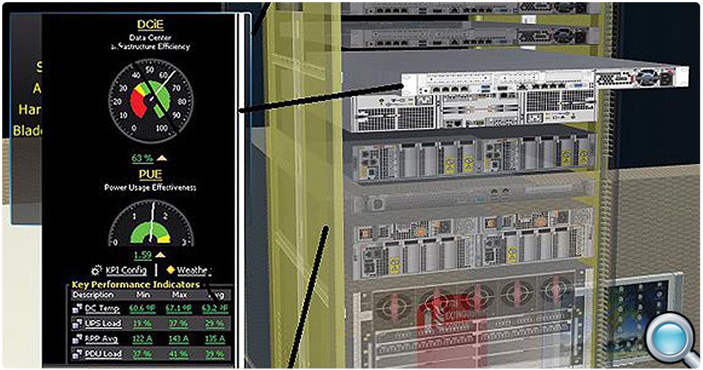 3D-Visualization (physically and virtually) for data center infrastructure management (DCIM), uniquely capable of visualizing virtual machines, virtual network topology, physical rackspace, physical device details (including its modules, line-cards, etc.) power utilization and heat-map, data center walk through. nuVIZ™ use cases include data center planning and inventory drastically reducing time. In its next release nuVIZ™ is expected to provide dynamic DCIM visualization, including adds, moves and changes.